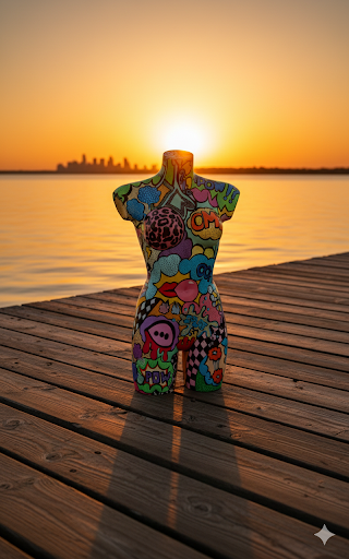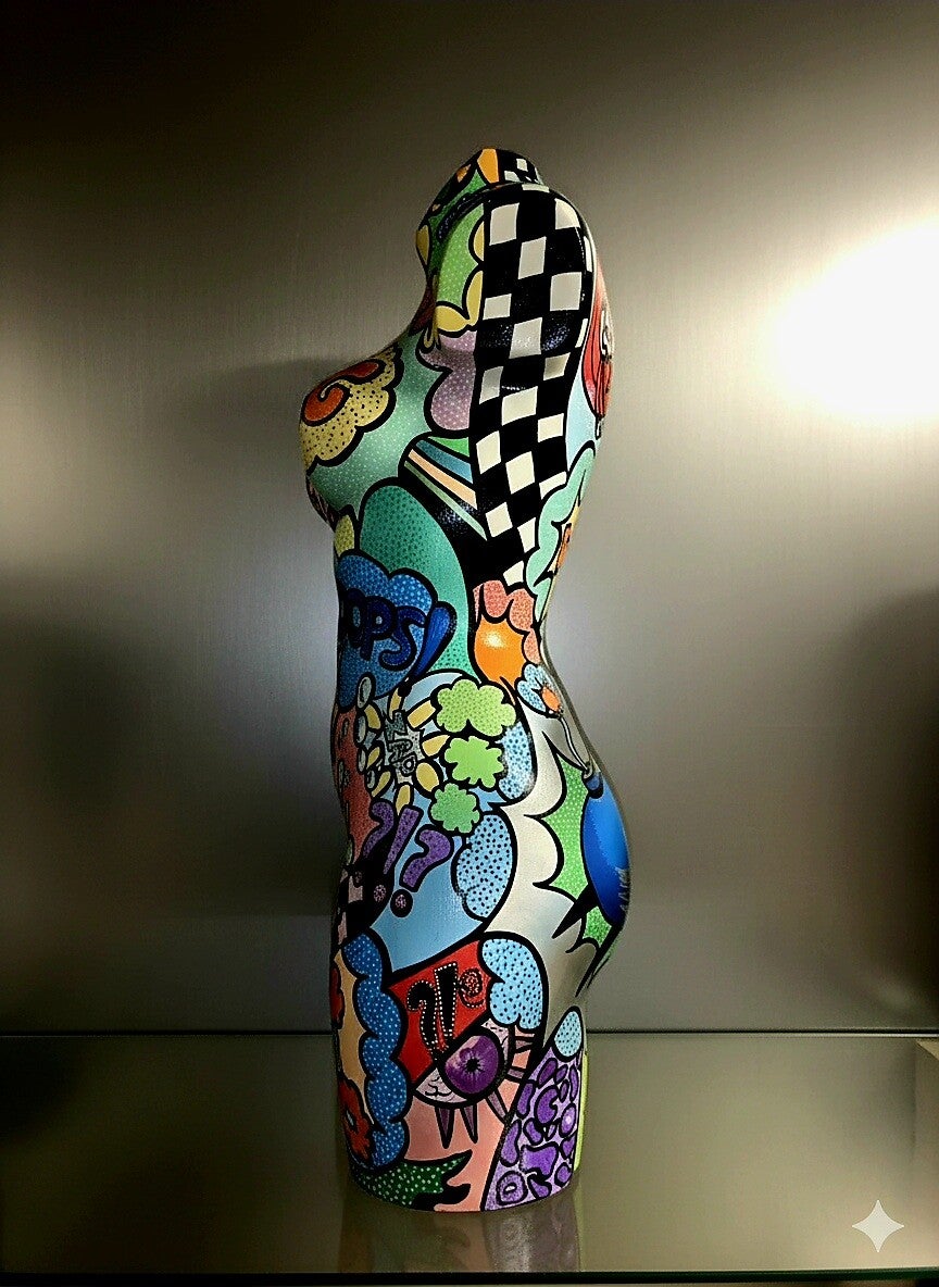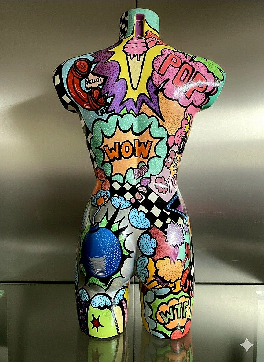 Handbeschilderde paspop – Popart met lef en speelsheid